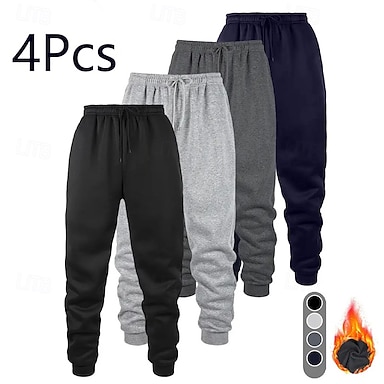 3 sztuki męskich spodni dresowych, polarowych, joggersów, spodni codziennych, ze ściągaczem w pasie, z kieszenią na zamek, gładkich, odprowadzających wilgoć, oddychających, pełnej długości,