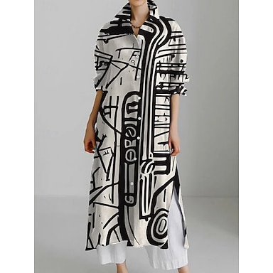 Damskie Sukienka midi Sukienka koszulowa Codzienne sukienki Moda Nowoczesny Codzienny Święto Weekend Regularny Geometryczny Kolorowy blok Rękaw 3/4 Kołnierzyk koszuli Morelowy Lato Wiosna Jesień