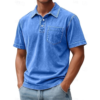 Męskie Koszulki polo Koszula ze 100% bawełny Acid Wash Codzienny Święto Klapa Krótki rękaw Moda Podstawowy Równina Postarzane Zakłopotany Lato Wiosna Na każdy sezon Regularny Niebieski Czarny