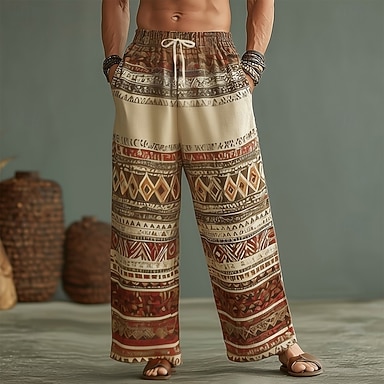 Męskie Geometryczny Etnické Spodnie Luźne spodnie Spodnie codzienne Średni Talia Boho Vintage Retro Dom Na zewnątrz Urlop Elastyczny pas ściągany sznurkiem Spodnie lniane z kieszeniami Lato Wiosna