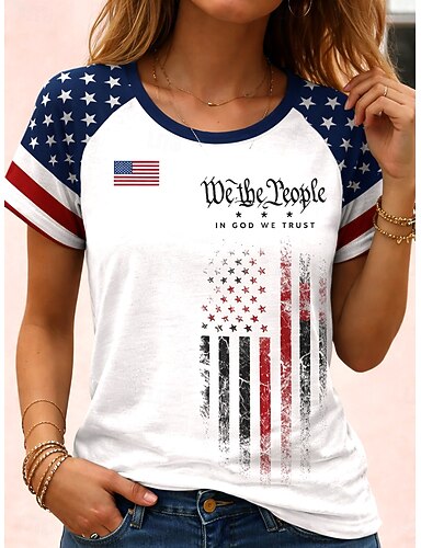 Amerykański Dzień Niepodległości Damskie Podkoszulek Nadruk Graficzny Flaga Ameryki Zabytkowe Elegancki Klasyczny Krótki rękaw Półgolf Zwykłe topy Codzienny Czarny Biały Czerwony Lato Wiosna