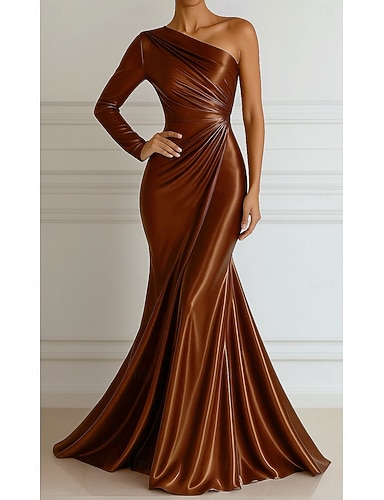 Ołówkowa Kolumnowa Sięgająca podłoża Suknie balowe Suknia wieczorowa Suknia balowa Suknia formalna Elegancja Błyszczące Fason celebrycki Długi rękaw Na jedno ramię Impreza w ogrodzie Ślub Aksamit z