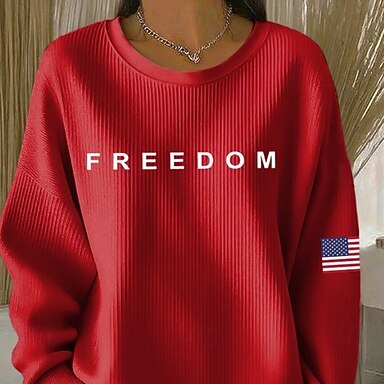 Amerykański Dzień Niepodległości Damskie Podkoszulek Nadruk Graficzny Flaga Litera Zabytkowe Elegancki Klasyczny Krótki rękaw Półgolf Zwykłe topy Codzienny Niebieski Czarny Biały Czerwony Lato Wiosna