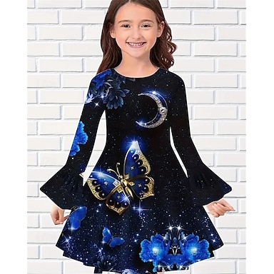 Dziewczyny ' 3D Motyl Sukienka Krótki rękaw Lato Wiosna Urlop Codzienny Święto Księżniczka Piękny Słodkie Dzieci 4-12 lat Codzienne sukienki Do kolan Regularny