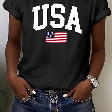 Amerykański Dzień Niepodległości Damskie Podkoszulek Kolorowy blok Nadruk Graficzny Flaga Ameryki Moda Elegancki Klasyczny Krótki rękaw Półgolf Zwykłe topy Codzienny Niebieski Biały Czerwony Lato