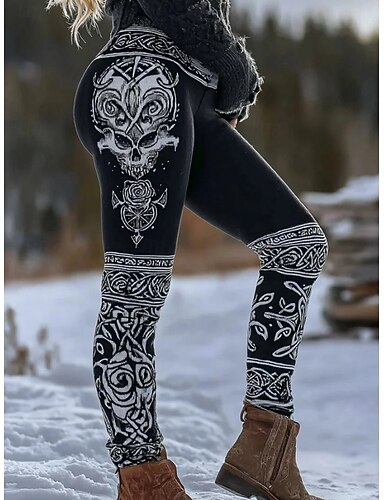 Legginsy damskie wakacje styl vintage pełna długość wysoki stan grafika czaszki abstrakcyjny nadruk miękkie oddychające elastyczne formalne na świeżym powietrzu wakacje niebieski fioletowy zielony