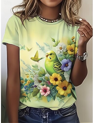 Damskie Podkoszulek Nadruk Kwiaty Graficzny Zwierzę Elegancki Klasyczny Codzienny Krótki rękaw Półgolf Okrągły dekolt Zwykłe topy Codzienny Zielony trawiasty Czerwony Zielony Lato Wiosna