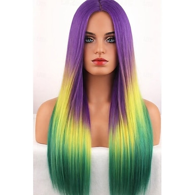 Peruka karnawałowa tęczowa, prosta, długa, syntetyczna, festiwalowa, kostium cosplay na paradę Mardi Gras dla kobiet