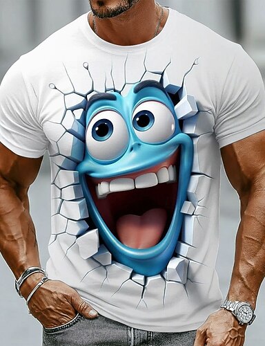 Męskie Wzór 3D 3D Zabawne emotikony Podkoszulek Krótki rękaw Podkoszulek Druk 3D Półgolf Koszula Przesadny Designerskie Codzienny Kij Impreza Niebieski Biały Pomarańczowy Lato Wiosna Na każdy sezon