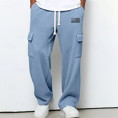 Męskie Spodnie dresowe cargo Spodnie dresowe Spodnie Spodnie dresowe z prostymi nogawkami Spodnie waflowe Ściągana na sznurek Kieszeń Elastyczny pas Amerykańska flaga USA Komfort Miękka Na zewnątrz