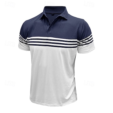 Męskie Bawełniana koszulka polo Codzienny Biznes Prążkowany kołnierzyk polo Klasyczny Krótki rękaw Podstawowy Nowoczesny Jednokolorowe Poziome paski Guziki Logo Lato Wiosna i lato Regularny