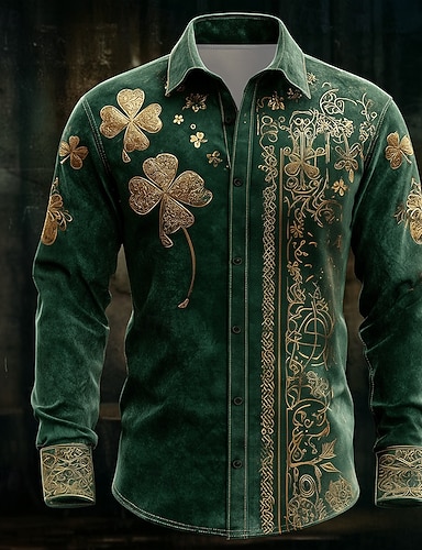 Koszulka z czterolistną koniczyną na Dzień Świętego Patryka dla mężczyzn sztuka celtycka koszula zapinana na guziki długi rękaw vintage retro wakacje wiosna jesień kołnierzyk nadruk 3D koszula