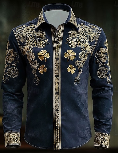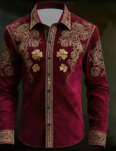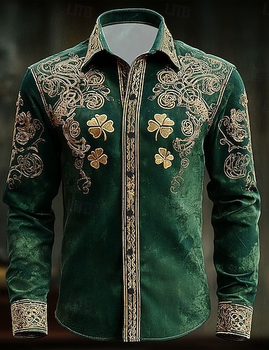 Koszulka z krzyżem celtyckim i skomplikowanym wzorem floranym na Dzień Świętego Patryka dla mężczyzn koszula zapinana na guziki długi rękaw vintage retro wakacje wiosna jesień kołnierzyk nadruk 3D