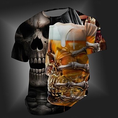 Męskie Czaszka Piwo Oktoberfest Podkoszulek Krótki rękaw Podkoszulek Druk 3D Półgolf Koszula Zabytkowe Nowoczesne Impreza Święto Oktoberfest Żółty Pomarańczowy Lato Wiosna Odzież S M L XL XXL XXXL