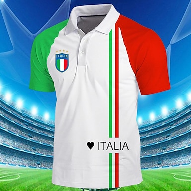 Puchar Piłki Nożnej 2026 Męskie Flaga Włoch Koszulki sportowe polo Koszula golfowa Krótki rękaw Koszulki polo Koszule z kołnierzykiem Codzienny Streetwear Ubrania wakacyjne Stroje na imprezę Druk 3D