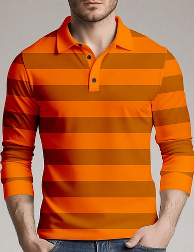 Męskie Poziome paski Polo do rugby Długi rękaw Koszulki polo Koszule z kołnierzykiem Odzież sportowa Codzienny Szkoła Na zewnątrz Athleisure Druk 3D Wiosna Jesień Zima Czarny Czerwony Pomarańczowy