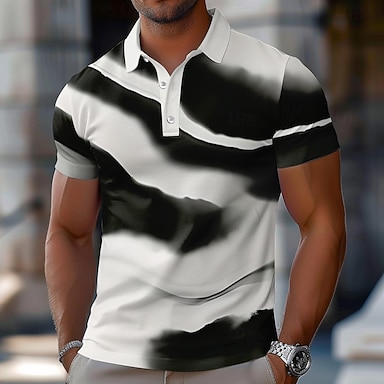 Męskie Graficzny Gra polo Krótki rękaw Koszulki polo Koszule z kołnierzykiem Codzienny Szkoła Na zewnątrz Dzienne zużycie Druk 3D Lato Czarno-biały