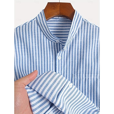 Męskie Koszula Koszula lniana Letnia koszula Koszula plażowa Koszula hawajska Pionowe paski Codzienny Plaża Niebieski Rumiany róż Krótki rękaw Kołnierz Wiosna i lato Odzież