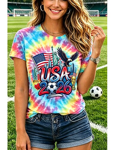 Damskie Podkoszulek Koszulka Nadruk Graficzny Piłka nożna Elegancki Klasyczny Codzienny Krótki rękaw Półgolf Zwykłe topy Codzienny Sport Wyjściowe Niebieski Czarny Biały Rumiany róż Czerwony Lato
