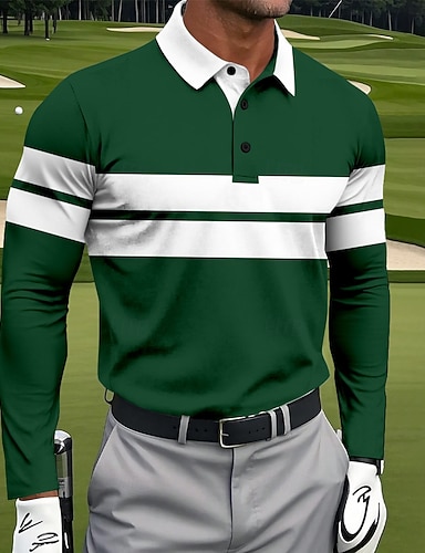 Męskie Pasek Polo do rugby Długi rękaw Koszulki polo Koszule z kołnierzykiem Codzienny Na zewnątrz Athleisure Druk 3D Wiosna Jesień Zima Czerwony Brązowy Zielony