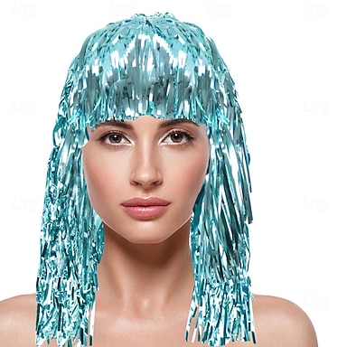 Peruka karnawałowa 2026 Niebieski Kręcone Długość średnia Peruka syntetyczna festiwalowa Mardi Gras Parada Włosy do kostiumu cosplay na Damskie