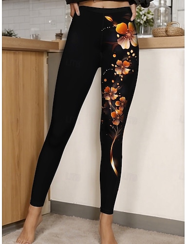 Damskie Spodnie Getry Przytulne legginsy Moda miejska Codzienny Pełna długość Wysoka talia Motyl Elastyczny pas Nadruk Oddychalność Wygodny Elastyczny Urlop Ulica Dzienne zużycie Czarny Niebieski