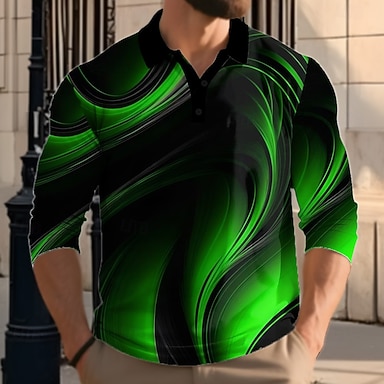 Męskie Abstrakcja Geometryczny Gra polo Długi rękaw Koszulki polo Klapa Codzienny Na zewnątrz Ulica Athleisure Dzienne zużycie Druk 3D Guziki Wiosna Jesień Zima Niebieski Zielony