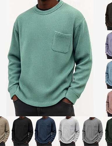Męskie Koszulka z goframi Podkoszulek Długi rękaw Wycięcie pod szyją Zima Wiosna i jesień Jednokolorowe Tradycyjne / Vintage Wycięcie pod szyją Na zewnątrz Dom Sport i turystyka Zgniła ziele