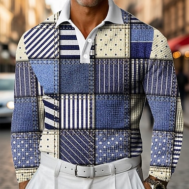 Męskie Kratka Koszulki polo waflowe Koszula golfowa Długi rękaw Koszulki polo Koszule z kołnierzykiem Zabytkowe Codzienny Ubrania wakacyjne Ubrania formalne Ubrania festiwalowe Guziki Druk 3D Wiosna