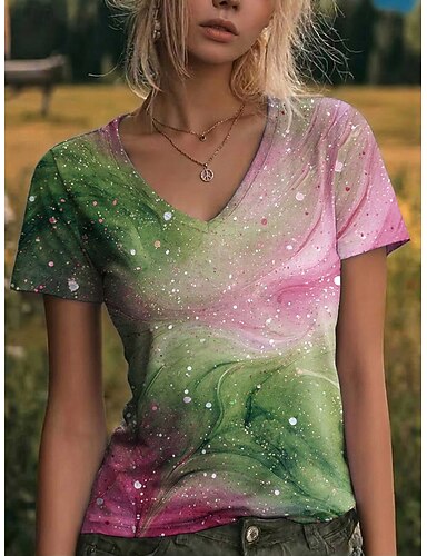 Damskie Podkoszulek Nadruk Graficzny Marmurowy nadruk Zabytkowe Elegancki Klasyczny Krótki rękaw Karbowana szyja Zwykłe topy Codzienny Weekend Niebieski Rumiany róż Błękit nieba Zielony Lato Wiosna