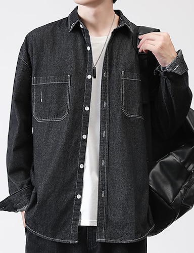 Męskie Kurtka koszulowa Koszula wierzchnia Dżinsowa koszula Równina Na zewnątrz Codzienny Czarny Niebieski Ciemnoniebieski Długi rękaw Klapa Wiosna i jesień Odzież Kieszeń