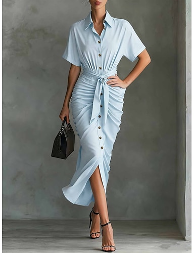 Damskie Sukienka midi Sukienka sweterkowa Sukienka syrenka Elegancja Nowoczesny Urlop Święto Randka Szczupła Równina Długi rękaw Kołnierzyk koszuli Czarny Zieleń wojskowa Jasnobrązowy Brązowy Wiosna
