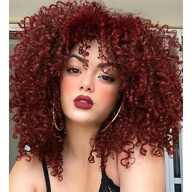 Peruka afro, czerwone, kręcone, krótkie peruki dla czarnoskórych kobiet, lata 70. i 80., duża, sprężysta, puszysta, kręcona, syntetyczna peruka z włosów do cosplayu na Halloween