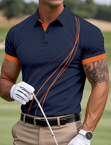Męskie Geometryczny Golf Koszulki sportowe polo Krótki rękaw Koszulki polo Koszule z kołnierzykiem Codzienny Athleisure Guziki Oddychająca siateczka Wiosna i lato Niebieski Fioletowy Pomarańczowy