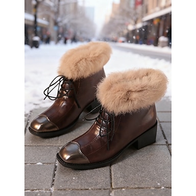 Brązowe, sznurowane botki damskie z mankietami ze sztucznego kożucha – ciepły i wygodny zimowy styl na śnieżną pogodę, codzienne wyjścia i zimowe podróże