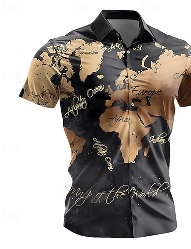 Męskie Podkoszulek Koszula Henley Koszulki Graficzny Mapa Henley Żółty Jasnozielony Czarny / Brązowy Brązowy Druk 3D Puszysta Na zewnątrz Codzienny Krótki rękaw Przycisk w dół Nadruk Odzież