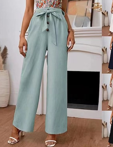 Damskie Pamuk Karışımı Sztuczna bawełna len Spodnie szerokie nogawki Typu Chino Urlop Moda miejska Podstawowy Pełna długość Średia talia Równina Kieszeń Elastyczny pas Wygodne Komfort Oddychający