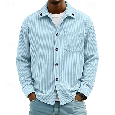 Męskie Koszula Koszula zapinana na guziki Koszula sztruksowa Kurtka koszulowa Koszula wierzchnia Niebieski Żółty Czerwony Granatowy Zielony Długi rękaw Równina Klapa Codzienny Na zewnątrz Przednia