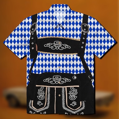 Oktoberfest Kratka Koszula Lederhosen bawarski Niemiecki Łąki Męskie Karnawał Festiwal Piwa Tkanina w stylu tradycyjnym Koszula