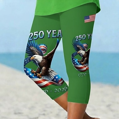 Amerykański Dzień Niepodległości Damskie Podkoszulek Nadruk Graficzny Flaga Zabytkowe Elegancki Klasyczny Krótki rękaw W serek Zwykłe topy Codzienny Weekend Ubrania wakacyjne Niebieski Czerwony