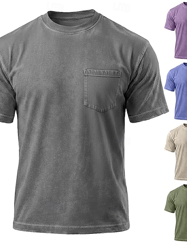 Męskie Podkoszulek Koszula ze 100% bawełny Acid Wash Koszulka Krótkie rękawy Półgolf Wycięcie pod szyją Lato Wiosna Na każdy sezon Jednokolorowe Zabytkowe Moda miejska Designerskie Kieszeń Farbowane