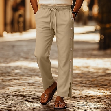 Męskie Lniane spodnie Spodnie Letnie spodnie Luźne spodnie Spodnie plażowe Elastyczny pas Ściągana na sznurek Guziki Równina Komfort Oddychający Pełna długość Na zewnątrz Codzienny Święto Urlop Moda