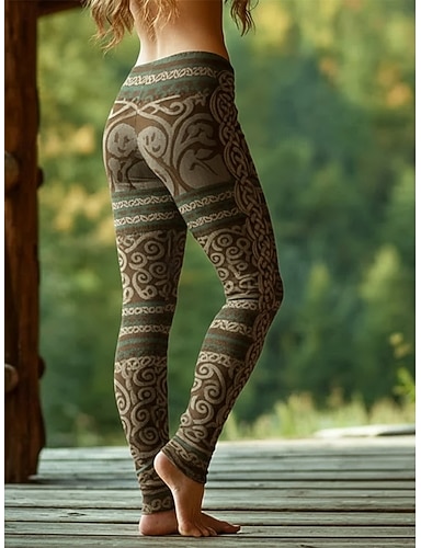Damskie Getry Przytulne legginsy Urlop Zabytkowe Styl etniczny Pełna długość Wysoka talia Graficzny Drukowanie Wygodny Wysoka elastyczność Codzienny Urlop Święto Ciemnobrązowy Brązowy Zielony Wiosna