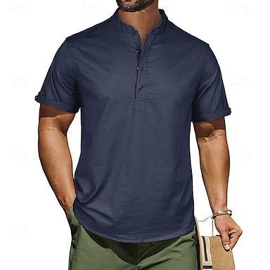 Męskie Koszulka z goframi Koszula lniana Podkoszulek Koszula Henley Krótki rękaw Kołnierz stawiany Lato Wiosna Jednokolorowe Moda miejska Elegancki Codzienny Niejednolita całość Guziki Codzienny Na