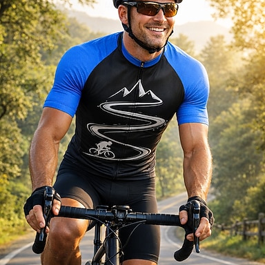 Męskie Koszulka rowerowa Geometryczny Rower Krótki rękaw Rower Koszula Dżersej Top z 3 tylnymi kieszeniami Odporny na UV Szybkie wysychanie Z kieszeniami Suwak przedni Sport Niebieski Odzież