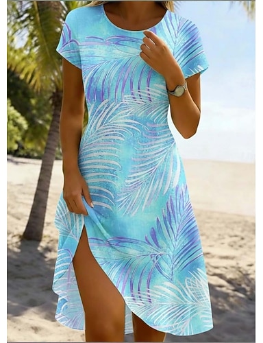 Damskie Sukienka mini Sukienka letnia Sukienka t-shirtowa Sukienka A line Urlop Codzienny Na zewnątrz Plaża Wyjściowe Regularny Kwiaty Graficzny Kształt listka Krótki rękaw Wycięcie pod szyją Głęboka