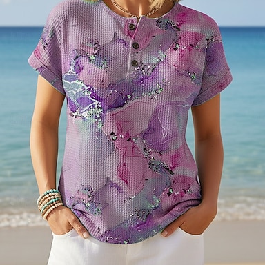 Damskie Podkoszulek Nadruk Kwiaty Graficzny Zabytkowe Elegancki Klasyczny Krótki rękaw Półgolf Zwykłe topy Codzienny Weekend Królewski błękit Fioletowy Lato Wiosna