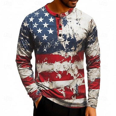 4 lipca 2026 250. rocznica Dnia Pamięci Męski Amerykańska Flaga Henley T-Shirt z Długim Rękawem Casual Dzienny