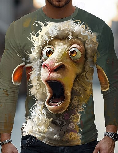 Męskie Zwierzę 3D Śmieszne Podkoszulek Długi rękaw Podkoszulek Druk 3D Półgolf Koszula Moda Podstawowy Ulica Codzienny Miętowy Szary Lato Wiosna Odzież S M L XL XXL XXXL