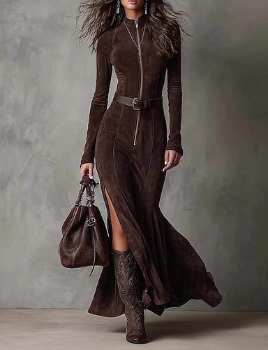 Ołówkowa Kolumnowa Sięgająca podłoża Sukienka dla gościa weselnego Suknia Suknia wieczorowa Sukienka dla matki panny młodej Długi rękaw W serek Elegancja Zabytkowe Formalny Aksamit z Marszcząca si